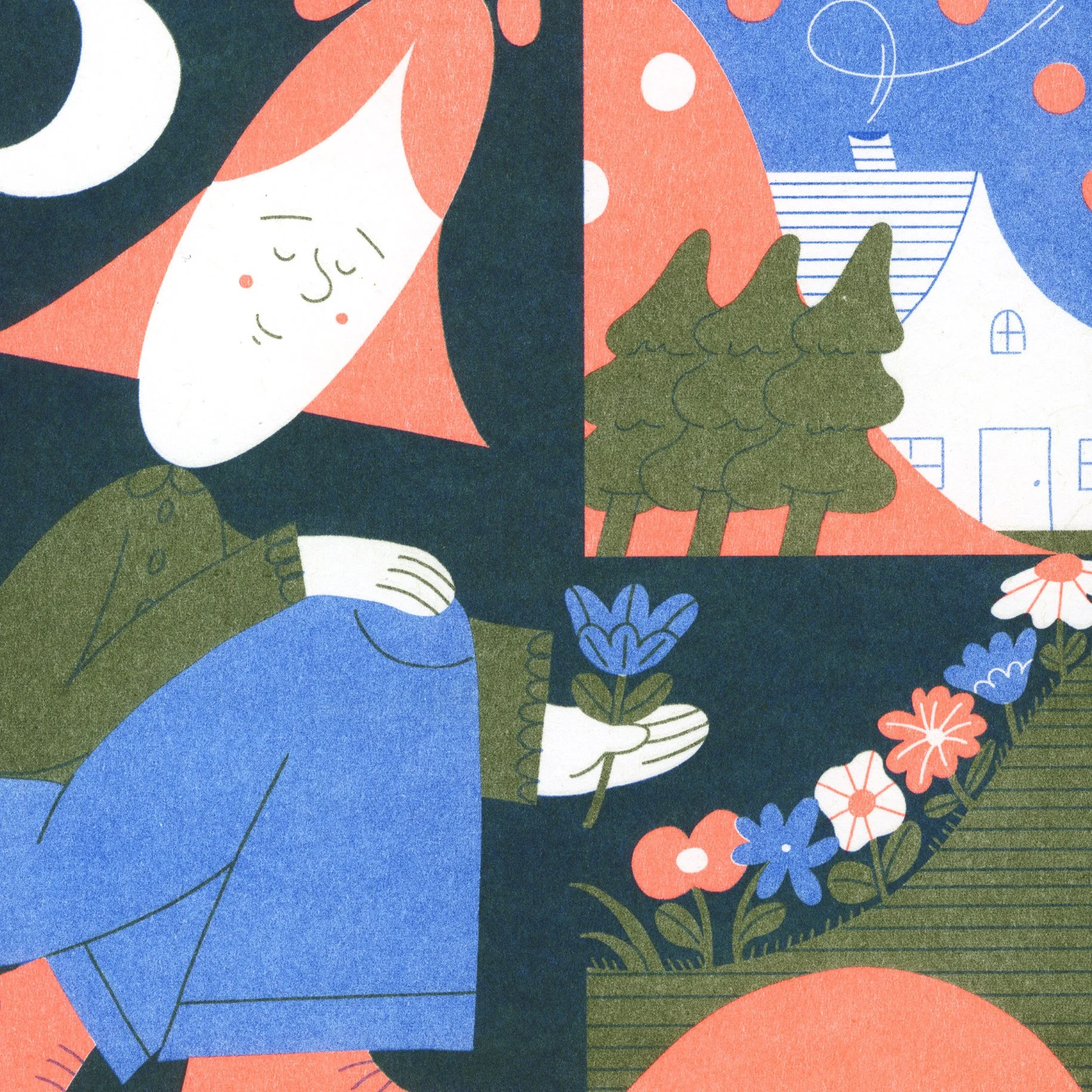 We have the largest Risograph palette of any UK studio, stocking 34 ink colours. We produce colourful Risograph prints and products, as well as screen prints and stickers.